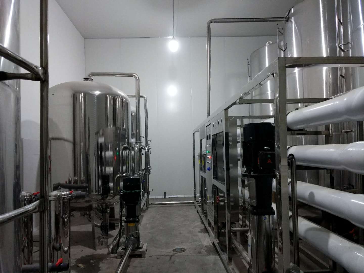 純凈水設備,一般用的都是反滲透技術,分一級反滲透設備和二級反滲透設備,根據具體情況和要求選擇。反滲透膜孔徑很小,0.1納米,基本上只讓水分子通過。其他的都濾除了。反滲透設備,前面配上預處理,后面配上殺菌裝置。純凈水水廠用的就是這種設備。
