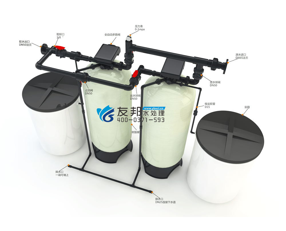 型號:YB-RHS-10,如需24小時連續出水選擇雙罐雙閥并聯運行,默認樹脂罐體材質為玻璃鋼,如需特殊罐體請說明。