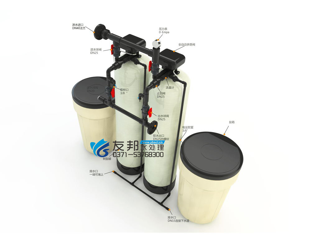 型號:YB-RHS-4,如需24小時連續出水選擇雙罐雙閥并聯運行,默認樹脂罐體材質為玻璃鋼,如需特殊罐體請說明。